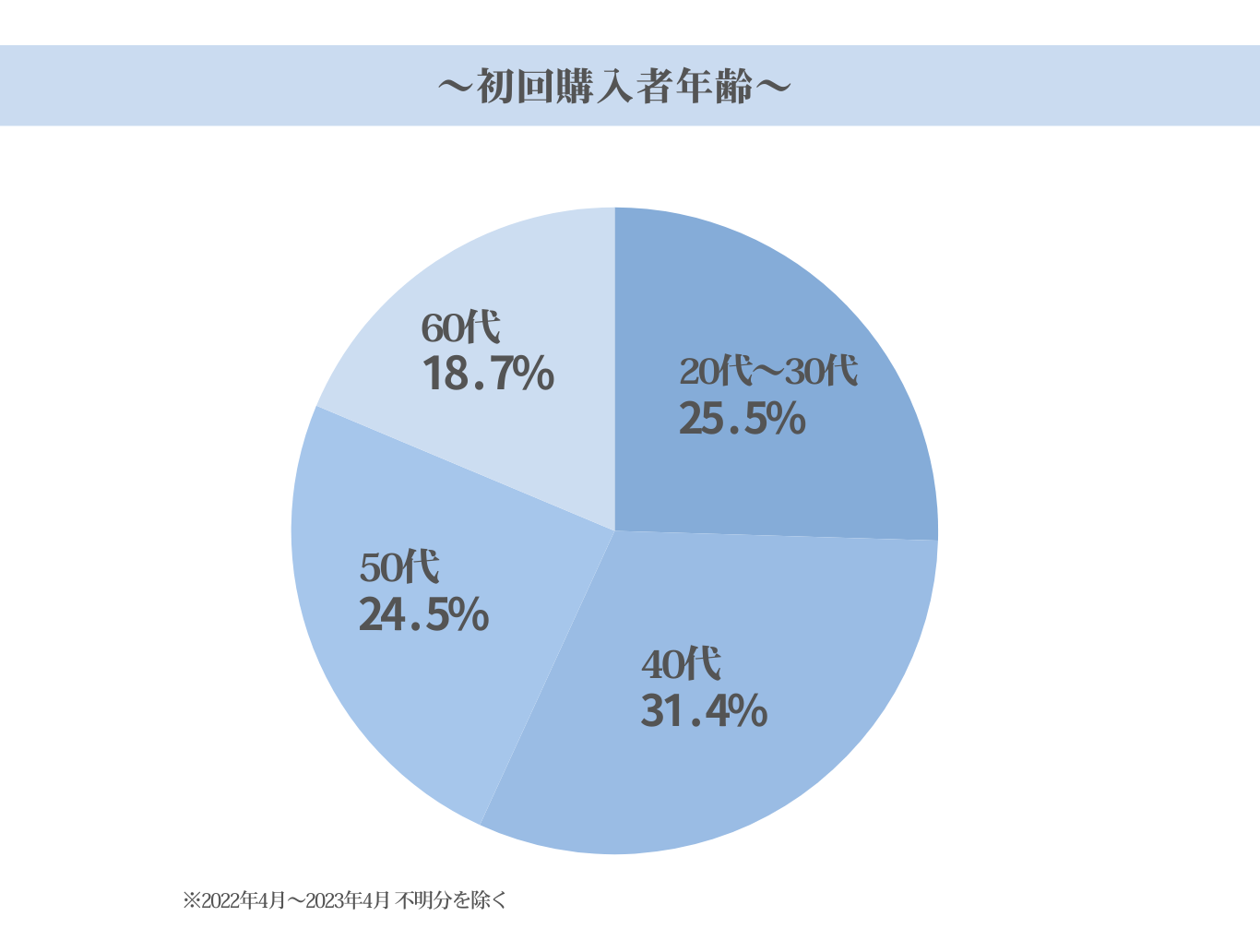 ドモホルンリンクルの初回購入者年齢の約3割が40代の方です。